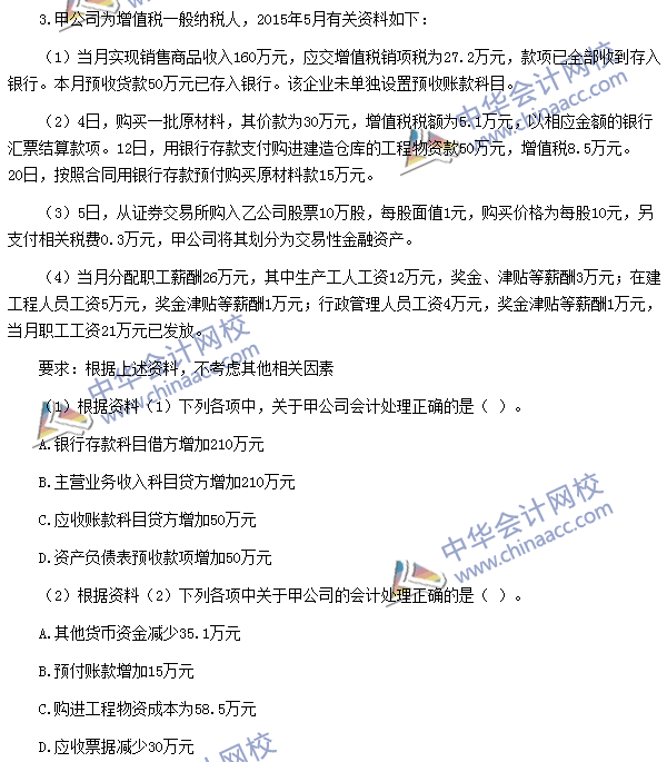 (3)【点评】该题考核交易性金融资产的取得。该知识点与考前模拟试题(二)单选题第2题、考前模拟试题(二)不定项第1题、考前预测卷(一)多选第2题的考点基本相同。