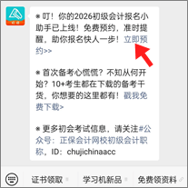 说明:预约报名入口开通提醒服务后,报名入口开通时会收到网校的提醒消息,以防各位考生遗忘或错过报名。