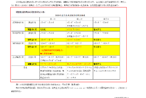 资质审核时间 | 原定时间 | 1月1日~ 1月20日 | 4月1日~ 4月20日 后调整为4月6日~ 4月27日 | 7月1日 ~ 7月20日 |