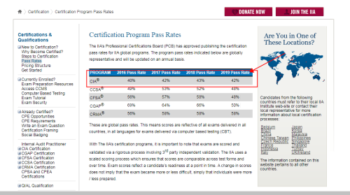 以上就是“CIA 全球通过率”相关信息,更多CIA国际内部审计师资讯,请关注正保会计网校CIA栏目。 2021年正保会计网校CIA课程助您备考,点击了解课程详情>>