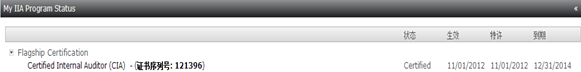 (一)Certified(正常状态)如果考生一直按照IIA的要求进行后续教育、报告年检,则证书显示为Certified。