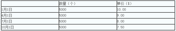 【答案解析】本题考查的知识点是存货估值。 A.正确。在先进先出法(FIFO)下,公司当年共出售的10000个存货来自1月1日和4月1日的采购;而年末剩下的10000个存货来自7月1日和10月1日的采购。期末存货中10000个来自至近的采购,这至近的采购成本是:5000*7.5+5000*8.00=$77500. B.不正确。该选项是假设了期末存货中的10000个来自4月1日和7月1日的采购。 C.不正确。该选项是假设了公司采用加权平均成本法。 D.不正确。该选项是假设了公司采用后进先出法。