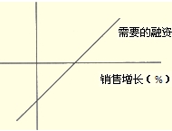 假设其他条件都不变,当销售增长率增长时,高利润率的公司的需要较少的融资;如果利润率再增加的话,图中所表示的融资需求线将如何变化?