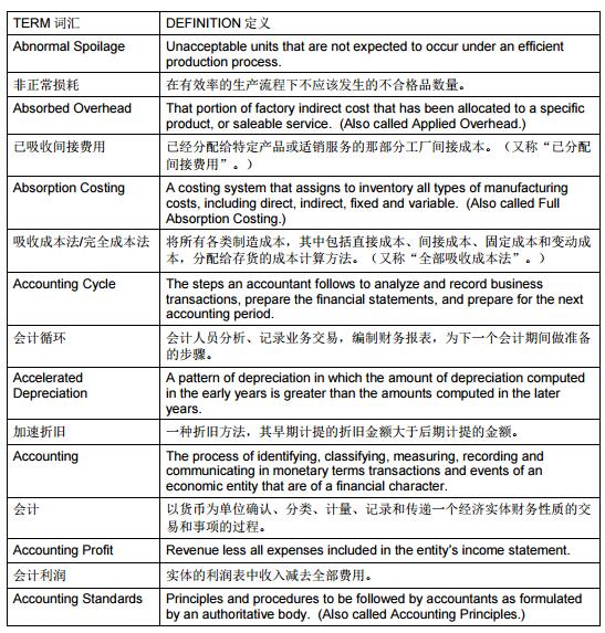 CMA考试所用词汇的专业词典——摘自IMA协会官网