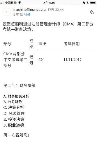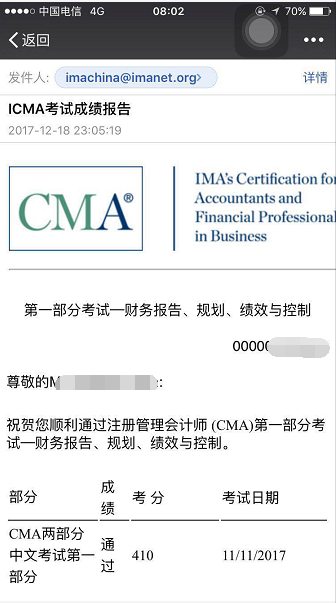 今日(12月19日)凌晨,美国管理会计师协会(IMA)公布了11月CMA中文考试的成绩,中华会计我网校众多CMA学员纷纷在朋友圈晒起了自己的成绩。班主任老师通过微信、QQ频频收到学员们通过的捷报,从目前的形势来看,网校今年通过率有望突破新高!