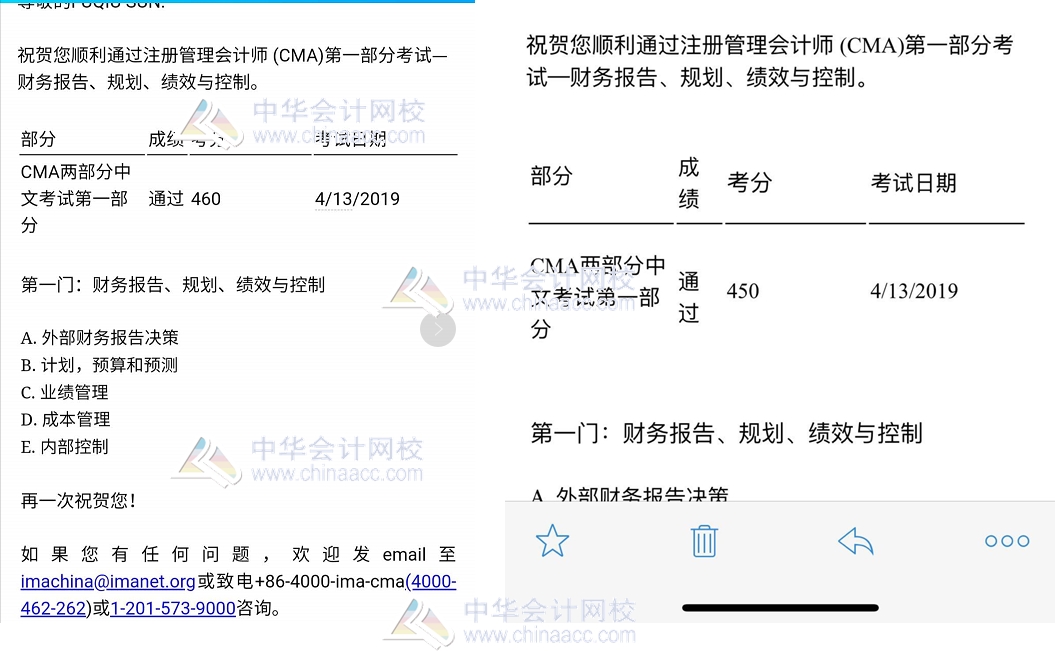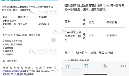 美国管理会计师协会(IMA)公布了4月CMA中文试成绩,网校班主任老师通过微信群、QQ频频收到学员通过的捷报。网校今年整体通过率及高分榜将打破以往,获得新的里程碑!截止目前,正保会计网校CMA学员斩获双科至高分!