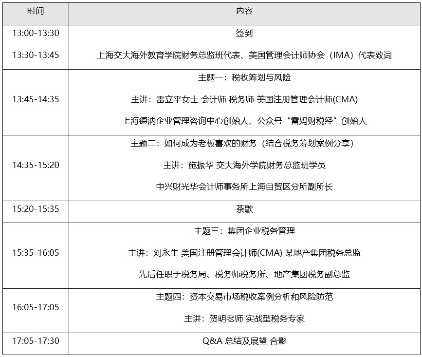 6月21日周五下午IMA美国管理会计师协会与上海交大海外教育学院共同邀请数位专家以企业资本运作的真实案例,全方位剖析资本交易中的税收政策、税务难点与税务规划。