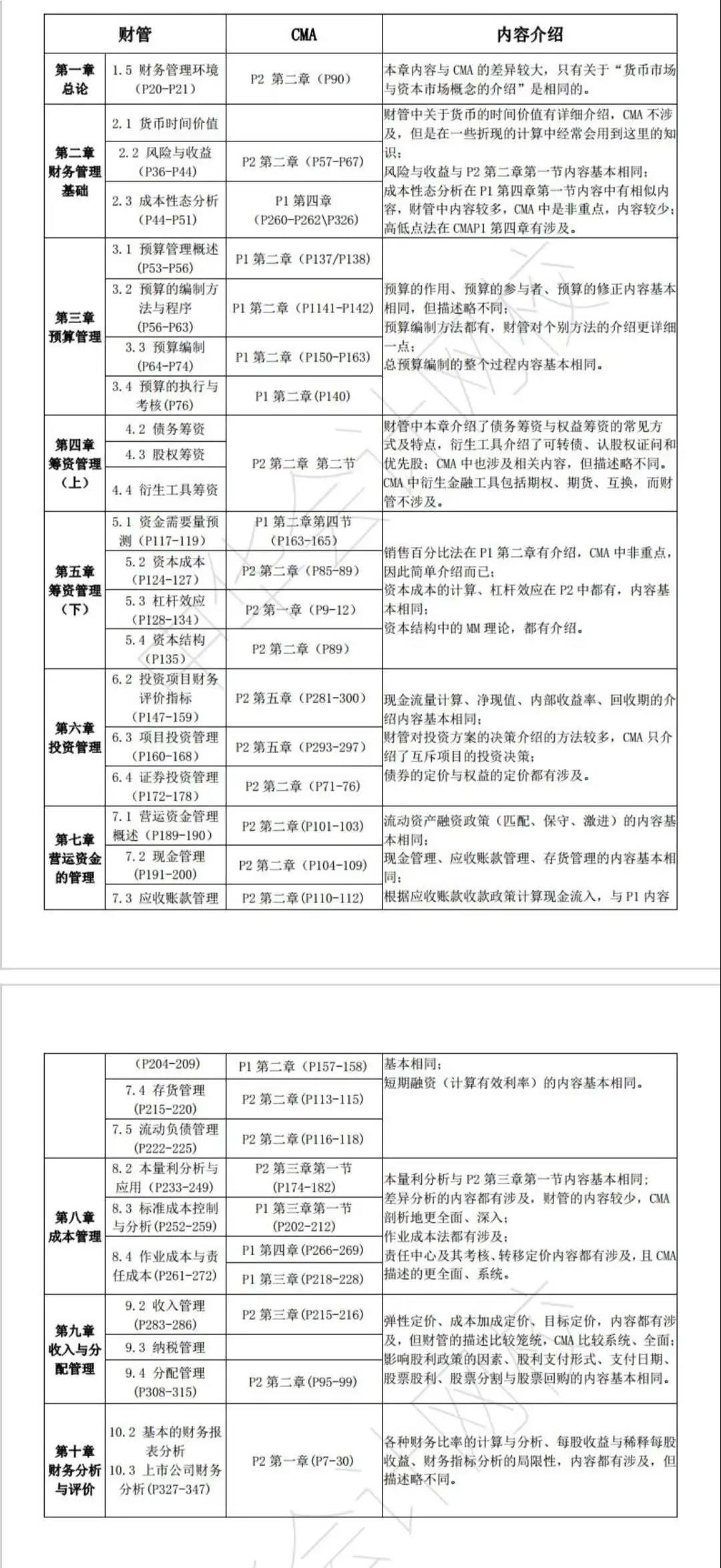 综上比较,可以发现,财管里几乎每一章的内容,都有与CMA重合的地方,但是财管讲的相对详细一些,而CMA会稍微简化一些,因为CMA假设学员已经有一定的财务基础,在这个基础上更偏重于管理会计决策分析方法的传授。并且财管今年新纲的内容也添加了一些管理会计原则等相关的理论内容,说明财务会计越来越倾向于向管理会计的转型。