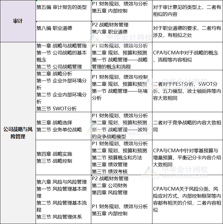 CMA与会计、财务成本管理和公司战略与风险管理有一些相似之处,详情如下: