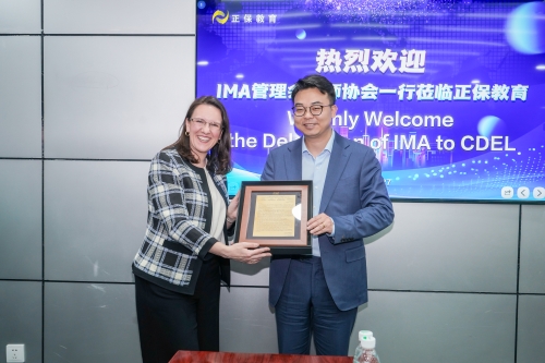 2024年3月27日,IMA全球合作业务与发展高级副总裁Dianna Steinbach女士及IMA全球副总裁兼中国区首席代表李刚先生携参访团一行莅临正保教育,正保教育对参访团的到来表示热烈欢迎。双方就战略合作事项进行深入沟通交流。