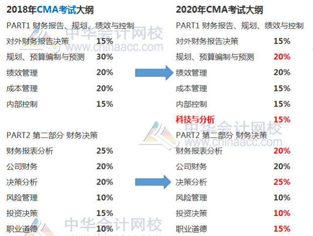 1、新增《科技与分析》,并且占第一部分考试内容的15%。“成本管理”占比减少5%至15%,与“对外财务报告决策”“内部控制”“科技与分析”占比一致。可见新增内容“科技与分析”的重要性!
