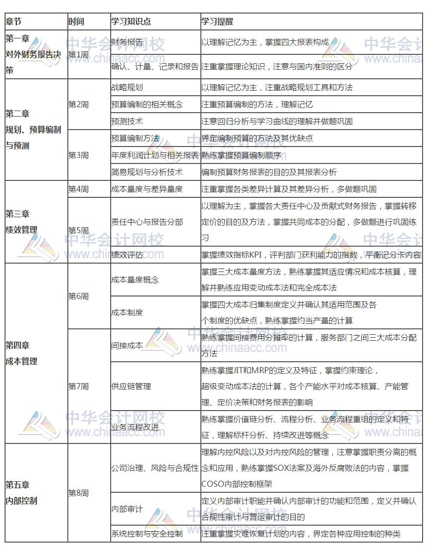 第一部分《财务报告、规划、绩效与控制》考试内容为: