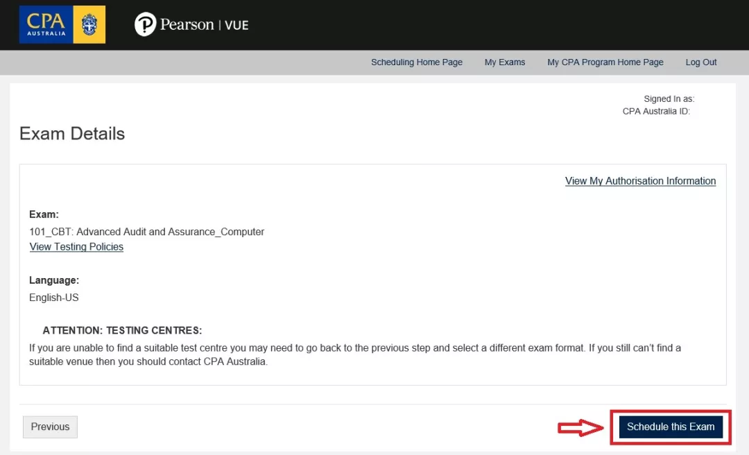 页面跳转后,点击SCHEDULE EXAM按钮。