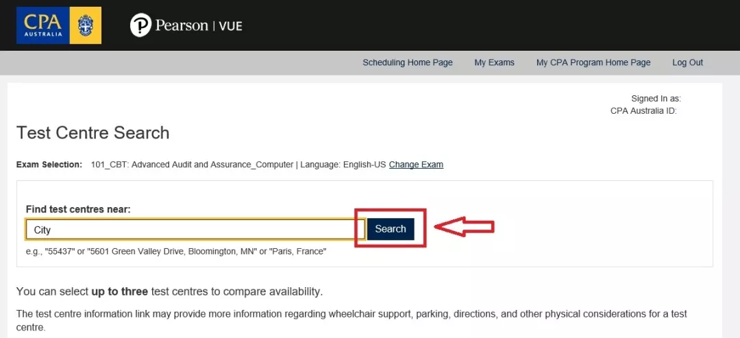 在考点搜索框中输入您想参加考试的城市,点击Search。