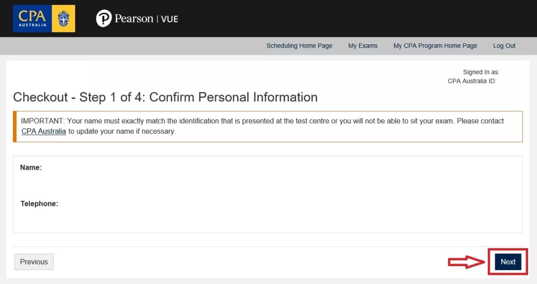 页面跳转后,请确认您选择的考点、日期、场次等信息,点击Proceed to Checkout,页面将跳转至信息确认页面。