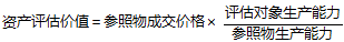 资产评估价值=参照物成交价格×(1-价格折扣率)