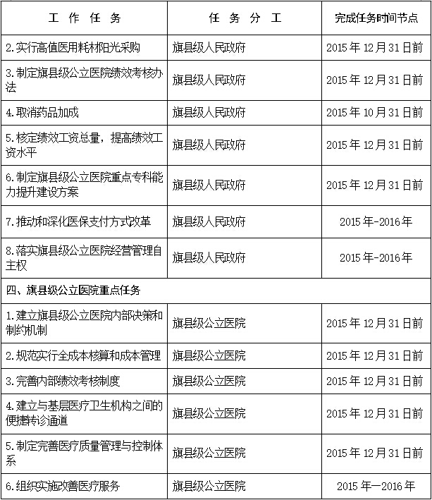 附件:全面推开旗县级公立医院综合改革重点任务分工和进度安排表