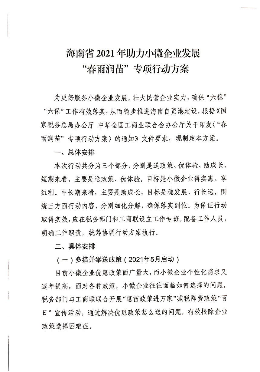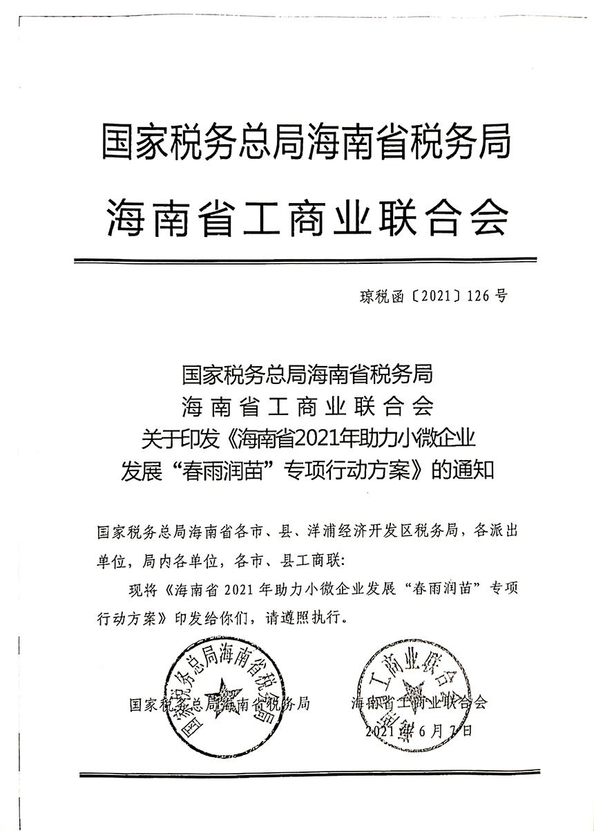 颁布时间:2021-06-07 发文单位:国家税务总局海南省税务局 海南省工商业联合会