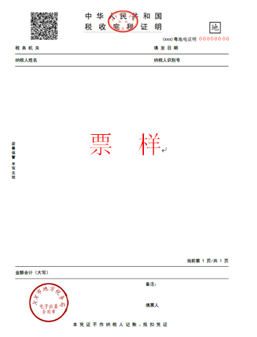 三、电子税票开具种类暂包括《税收完税证明》(表格式)、《税收完税证明》(文书式),式样见附件。其他种类电子税票将根据业务需要制定,并在广东省地方税务局门户网站等渠道上动态更新发布。