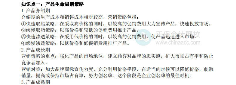 以下是高级经济师《工商管理》重要考点精选:产品生命周期策略