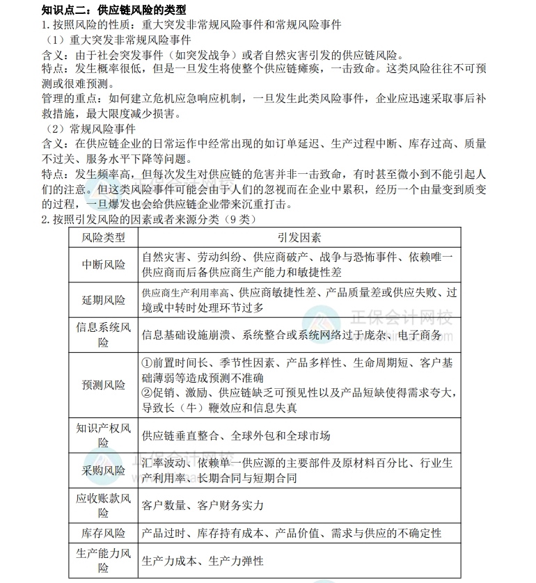 以下是高级经济师《工商管理》重要考点精选:供应链风险的类型