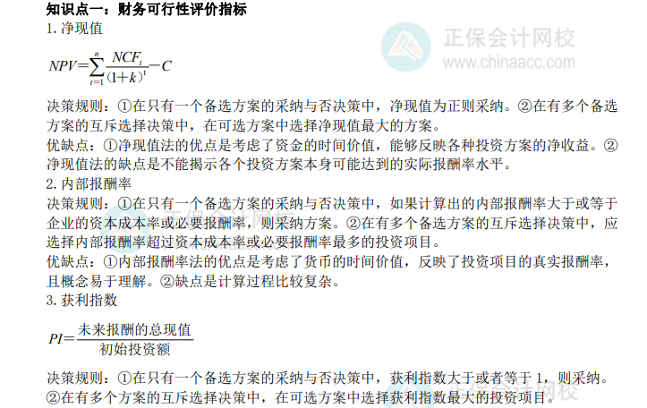 以下是高级经济师《工商管理》重要考点精选:财务可行性评价指标