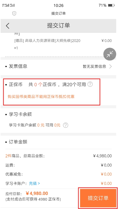 二、确认课程、提交订单(有正保币的,记得使用正保币抵扣哦)