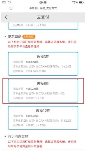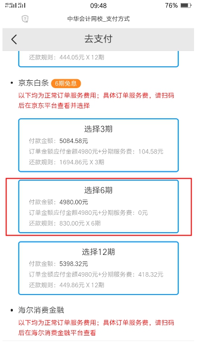 三、选择支付方式——分期支付,选择京东白条,选择6期支付