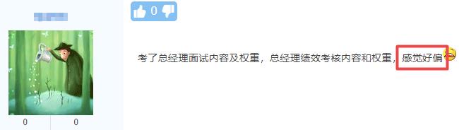 由上面的讨论可知,2021年高级经济师工商管理整体来说,是偏难的。当然,难易也是因人而异的,如果您也考试了,您感觉2021年高级经济师工商管理考试难度如何?快来参与讨论吧>>