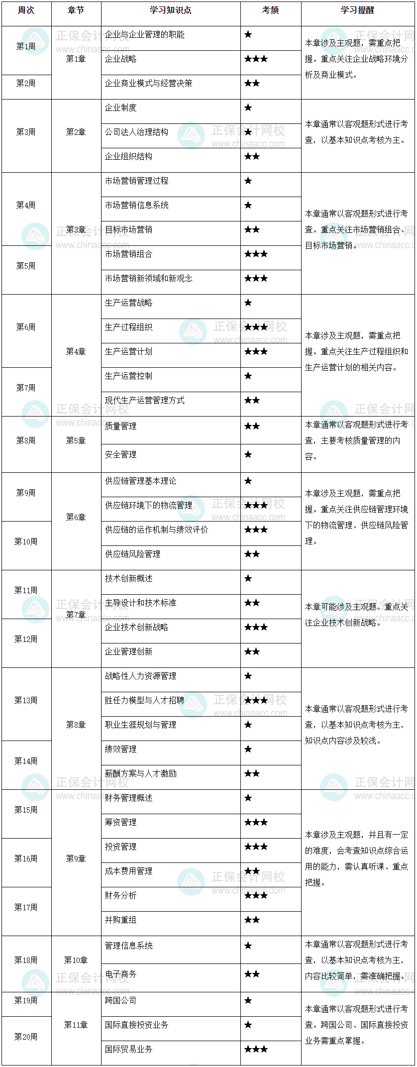 2023年高级经济师《工商管理》预习计划(共20周)