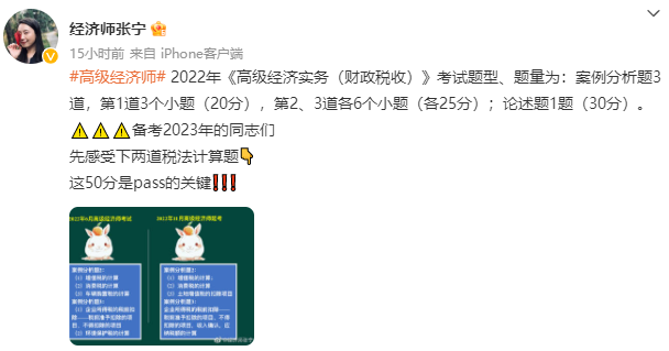 计划报考2023年高级经济师财政税收的小伙伴们,关于高级经济师财政税收考试题型、题量及分值你们都清楚吗?都考哪些内容?快来看网校张宁老师的微博提醒吧!