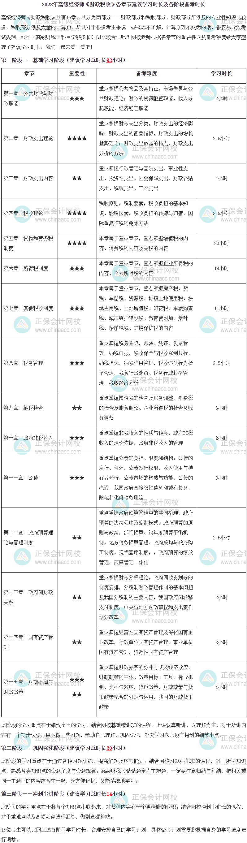 高级经济师《财政税收》科目无教材,如何备考?学够多长时间比较合适?备考时长如何安排?网校教务老师根据各章节的重要性以及备考难度给大家整理了建议学习时长,我们一起来看一看吧!