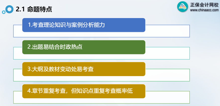 ④章节重复考查,但知识点重复考查概率低。