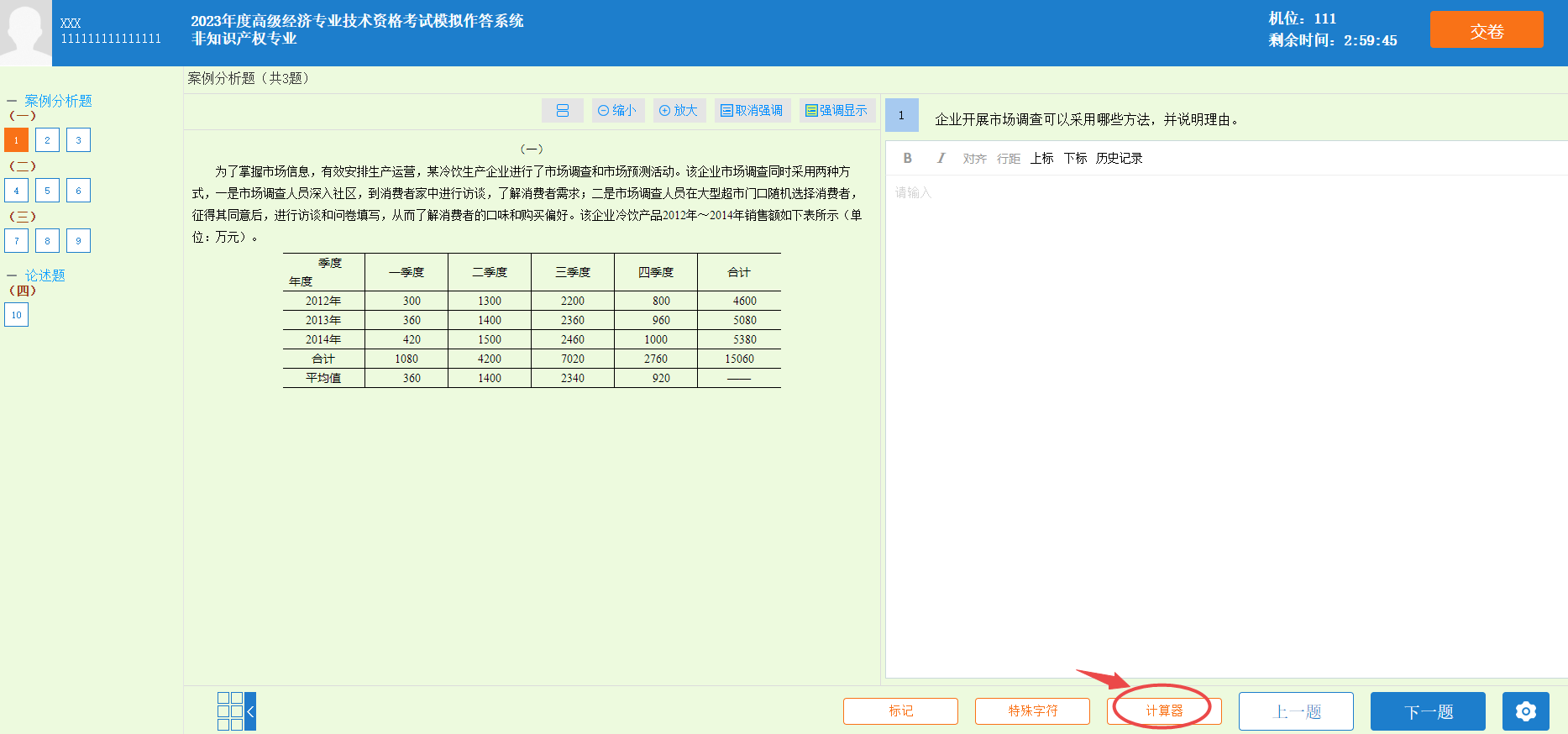 一、高级经济师考试机考系统自带计算器,在做题界面,位置右下角。