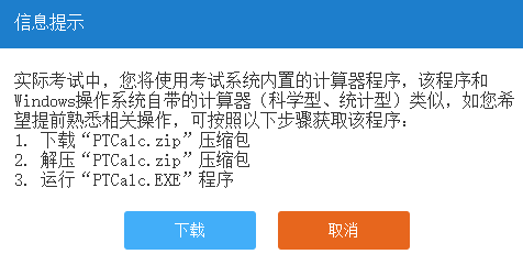 点击做题界面的计算器提示:实际考试中,您将使用考试系统内置的计算器程序,该程序和Windows操作系统自带的计算器(科学型、统计型)类似,如您希望提前熟悉相关操作,可按照以下步骤获取该程序: