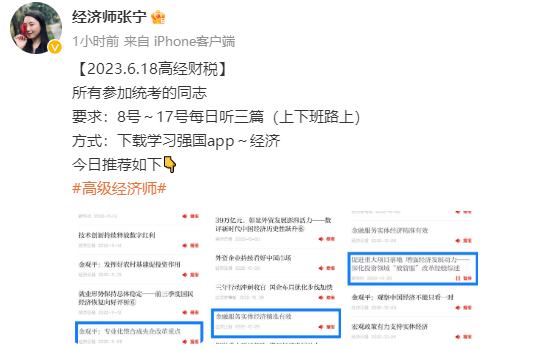 2023年高级经济师财政税收专业考试临近,考生需要关注哪些时事热点?快来看网校张宁老师微博今日的推荐吧!