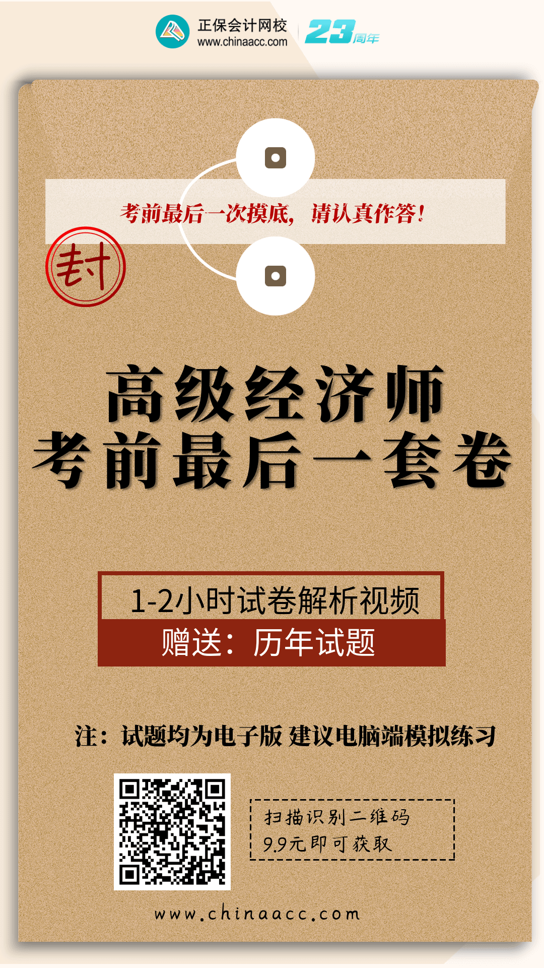 高级经济师考试在6月18日进行,大家都做好准备了吗?就差最后一哆嗦了,我们为大家准备考前摸底试卷,大家在考试前再做一次,查漏补缺,我们尽可能地减少我们的知识短板。9.9元立即解锁>>