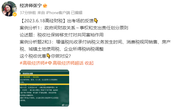 2023年高级经济师财政税收专业考试已结束,考了哪些内容?张宁老师提醒的税收优惠你做对了吗?
