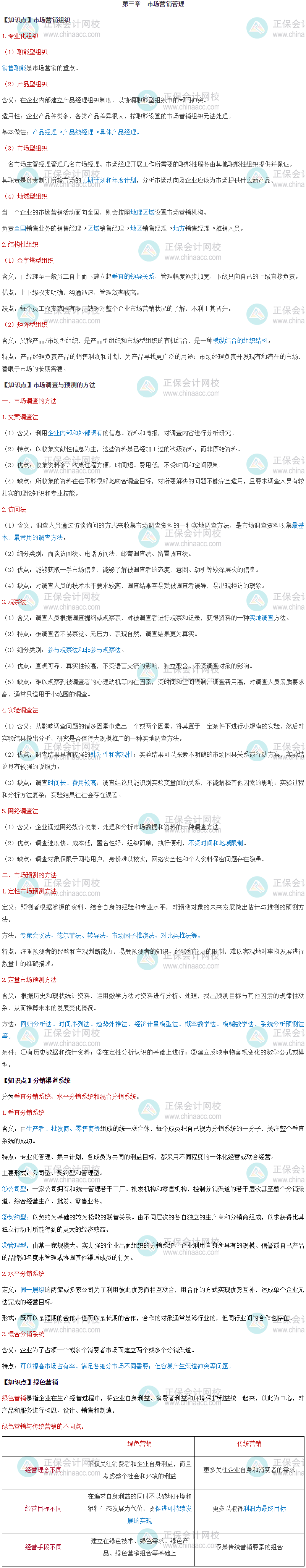 以下是高级经济师三色笔记工商管理专业第三章内容: