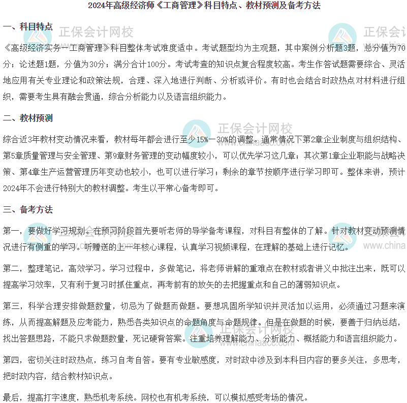 2024年高级经济师考试备考已悄悄开始,想要提前学习高级经济师,不清楚科目特点?不知道学什么?怎么学?来看网校教务老师为大家准备的“2024年高级经济师《工商管理》科目特点、教材预测及备考方法”!