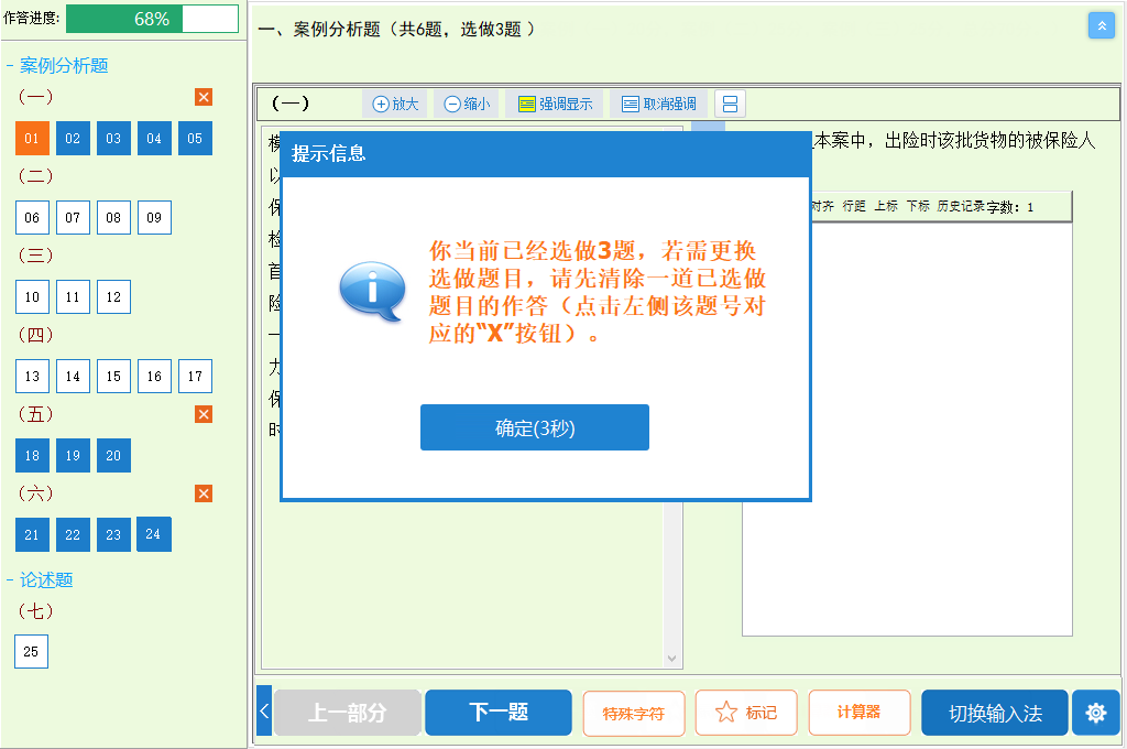若作答满3道试题后,要更换所选试题,则要先清除一道已选试题的作答。
