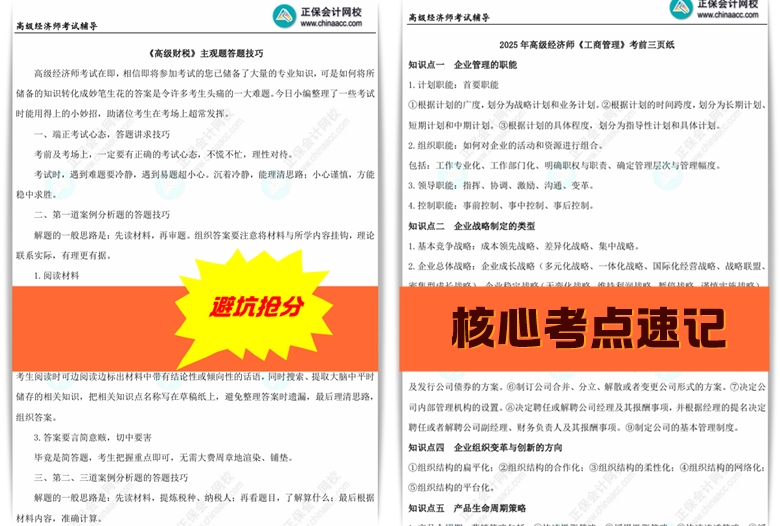 2025年高级经济师考试在即,有限的时间如何高效利用?抓重点,记核心考点。网校精心整理高经考前三页纸及主观题答题技巧,助力冲刺!