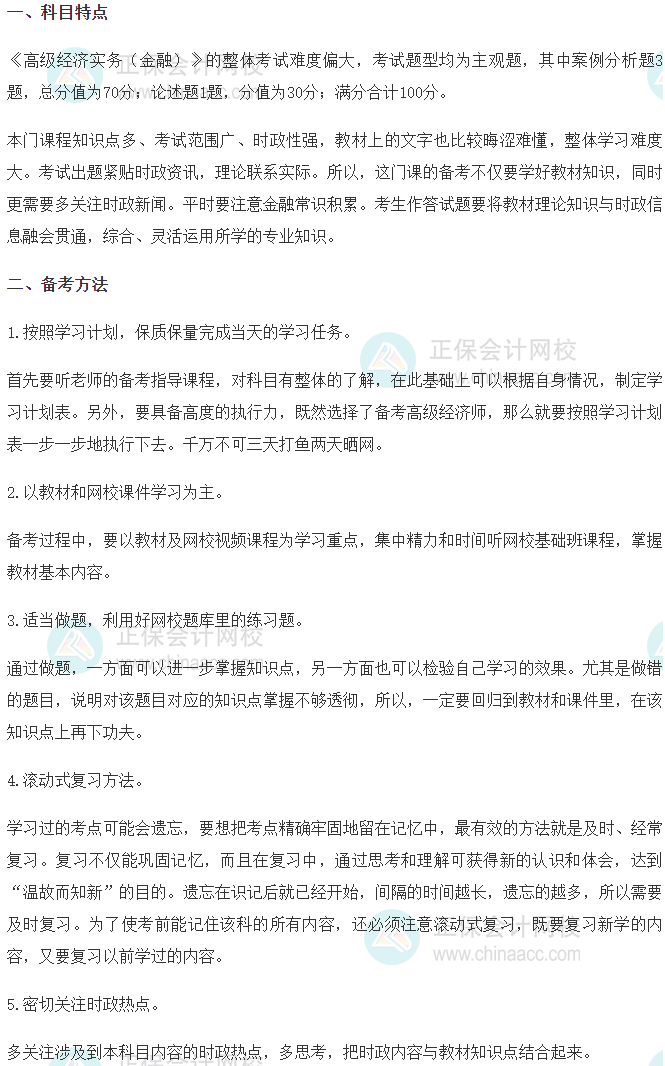 因为高经考试难度高于中经,学习内容多,建议现在就开始学习,为明年的高级经济师考试做准备!下面是2026高级经济师《金融》专业考试特点及备考方法,速来查收!