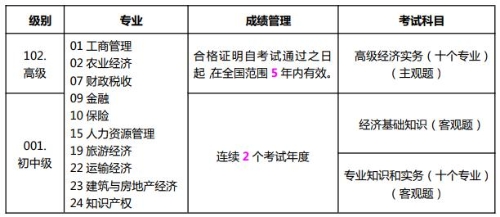 【成绩管理】经济专业技术资格考试高级考试,达到全国统一合格标准者,颁发人力资源社会保障部统一印制的经济专业技术资格考试成绩合格证明。合格证明自考试通过之日起,在全国范围 5 年内有效。初中级考试的应试人员须在连续的 2 个考试年度内通过全部应试科目(具体参阅表一)。