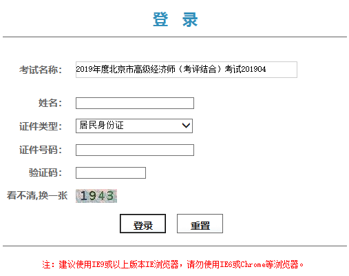 北京市2019年度高级经济师资格试行考评结合考试《经济理论与实务》成绩通知单查询入口