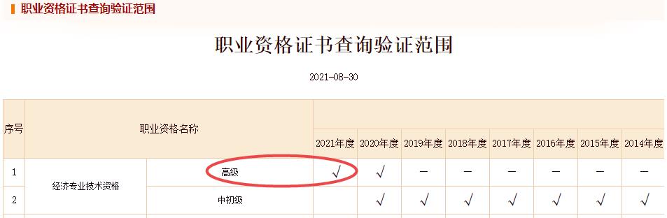 注意!中国人事考试网职业资格证书查验范围更新,2021年高级经济师考试合格证明可查验啦!截图如下: