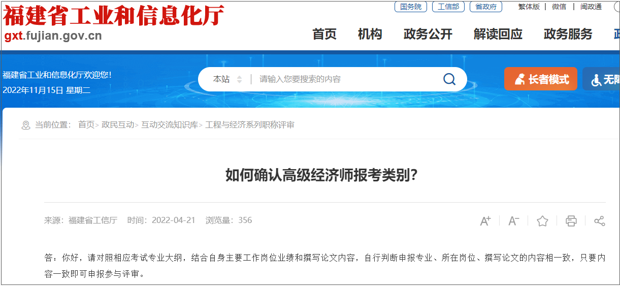 此外,福建省工业和信息化厅关于高级经济师专业选择也给出了回复,具体如下: