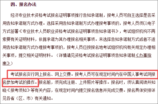 根据中国人事考试网“经济专业技术资格考试”介绍可知,高级经济师考试报名实行网上报名、网上交费。报考人员可在规定时间内在中国人事考试网报名参加考试的操作。