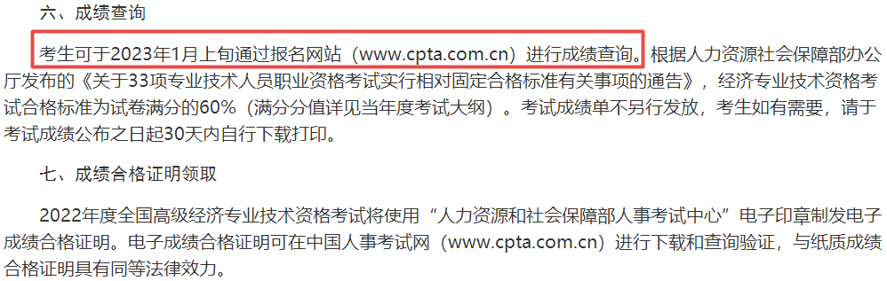 根据北京高级经济师补考小伙伴提供的准考证信息可知:考生可于2023年1月4日登录中国人事考试网查询考试成绩。