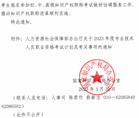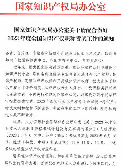 附件:国家知识产权局办公室关于请配合做好2023年度全国知识产权职称考试工作的通知